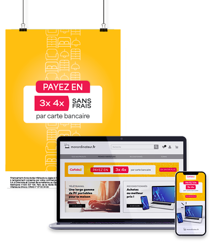 3x 4x : Financement d’une durée inférieure ou égale à 3 mois consenti sous réserve d’acceptation par COFIDIS, SA à Directoire et Conseil de surveillance au capital de 67 500 000€. Siège social Parc de la Haute Borne, 61 avenue Halley 59866 VILLENEUVE D’ASCQ Cedex – R.C.S LILLE METROPOLE SIREN N°325 307 106 enregistré auprès de l’ORIAS sous le numéro 07 02 34 93.